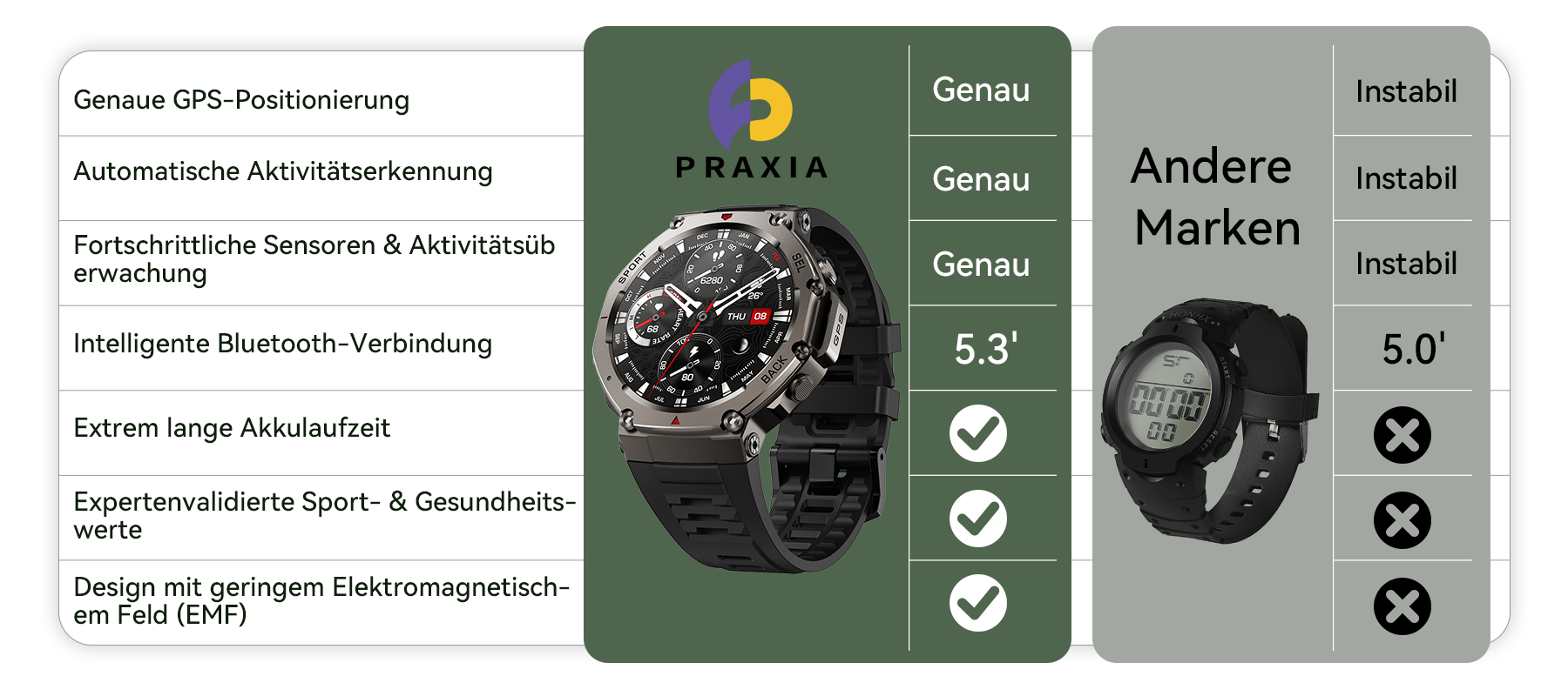 Angetrieben von seinen persönlichen Erfahrungen entwickelte Liam eine Uhr mit präziser GPS-Genauigkeit, langer Akkulaufzeit und umfassenden Tracking-Funktionen. Er testete sie unermüdlich auf anspruchsvollen Trails, um eine zuverlässige Leistung zu gewährleisten, die jeden Abenteurer unterstützt. Heute steht Praxia für Technologie, die von Abenteurern für Abenteurer entwickelt wurde – Leistung steht an erster Stelle, wirklich wichtige Funktionen an zweiter Stelle.