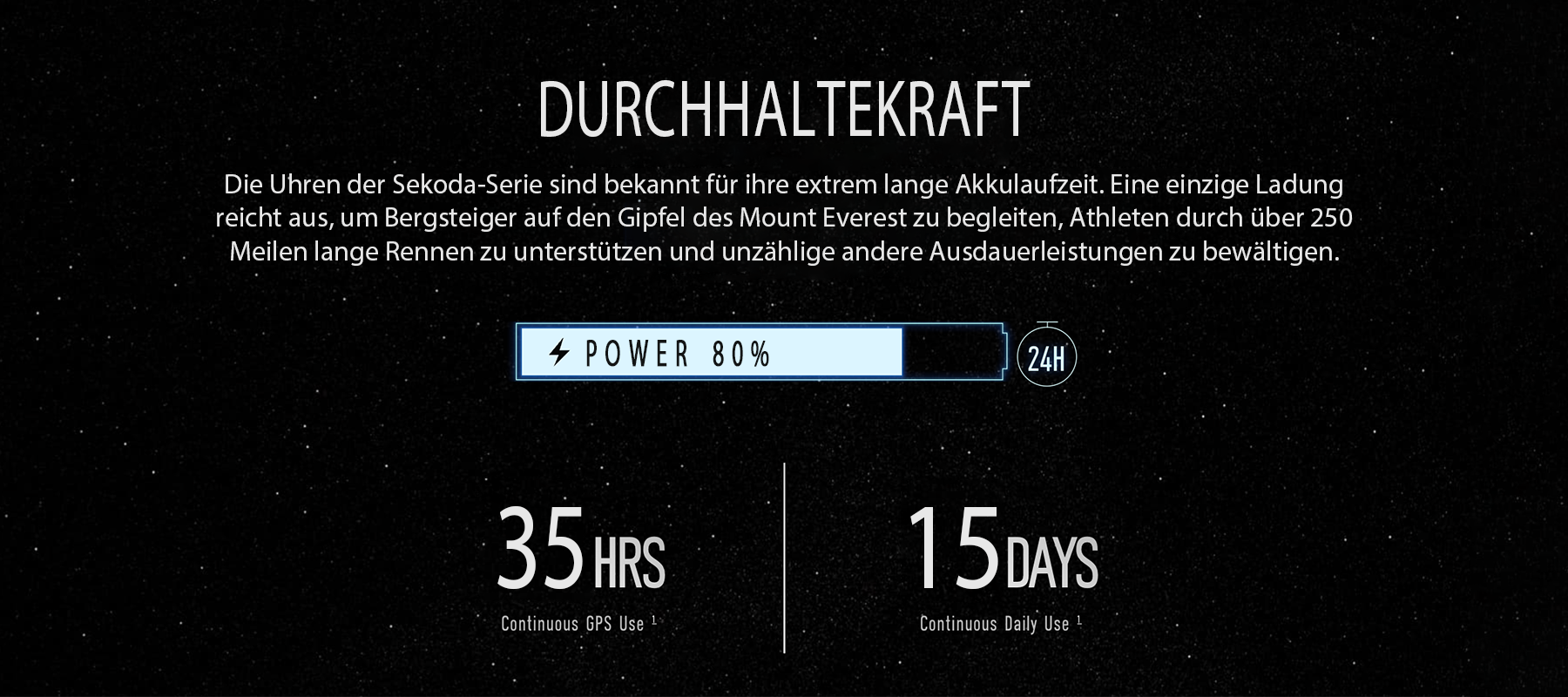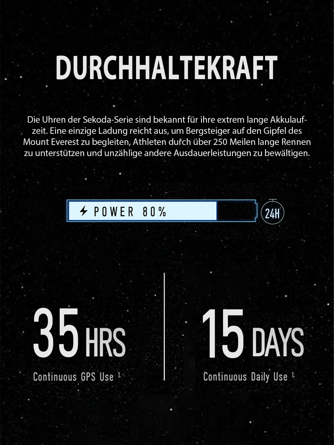 - Ultra-lange Akkulaufzeit – Leistungsstarker Akku für 15 Tage tägliche Nutzung oder 35 Stunden im GPS-Modus.