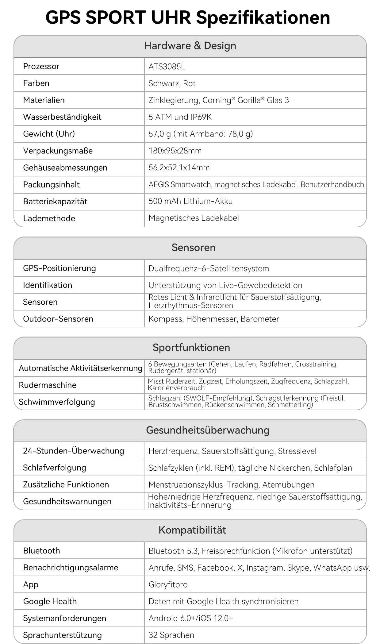 - Umfassende Sport- und Gesundheitsüberwachung – Multifunktionale Sensoren verfolgen präzise über 170 Sport- und Gesundheitsdaten.