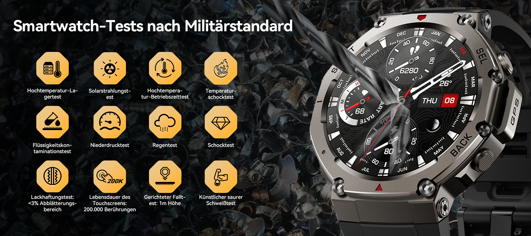 - Militärische Haltbarkeit – Zinklegierung, wasser- und staubdichte Konstruktion, um jeder Herausforderung standzuhalten.
