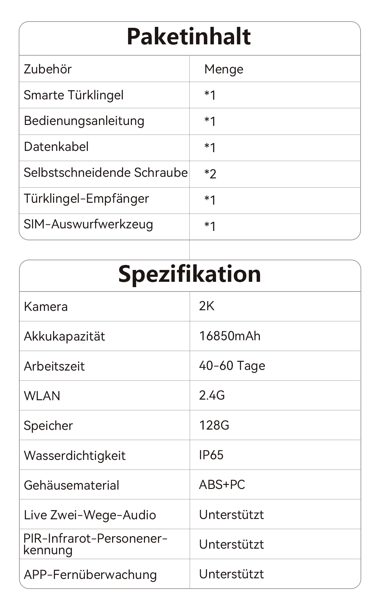 • Remote Convenience: Sehen und kommunizieren Sie jederzeit und überall über Ihr Handy, um Ihren Alltag zu erleichtern.